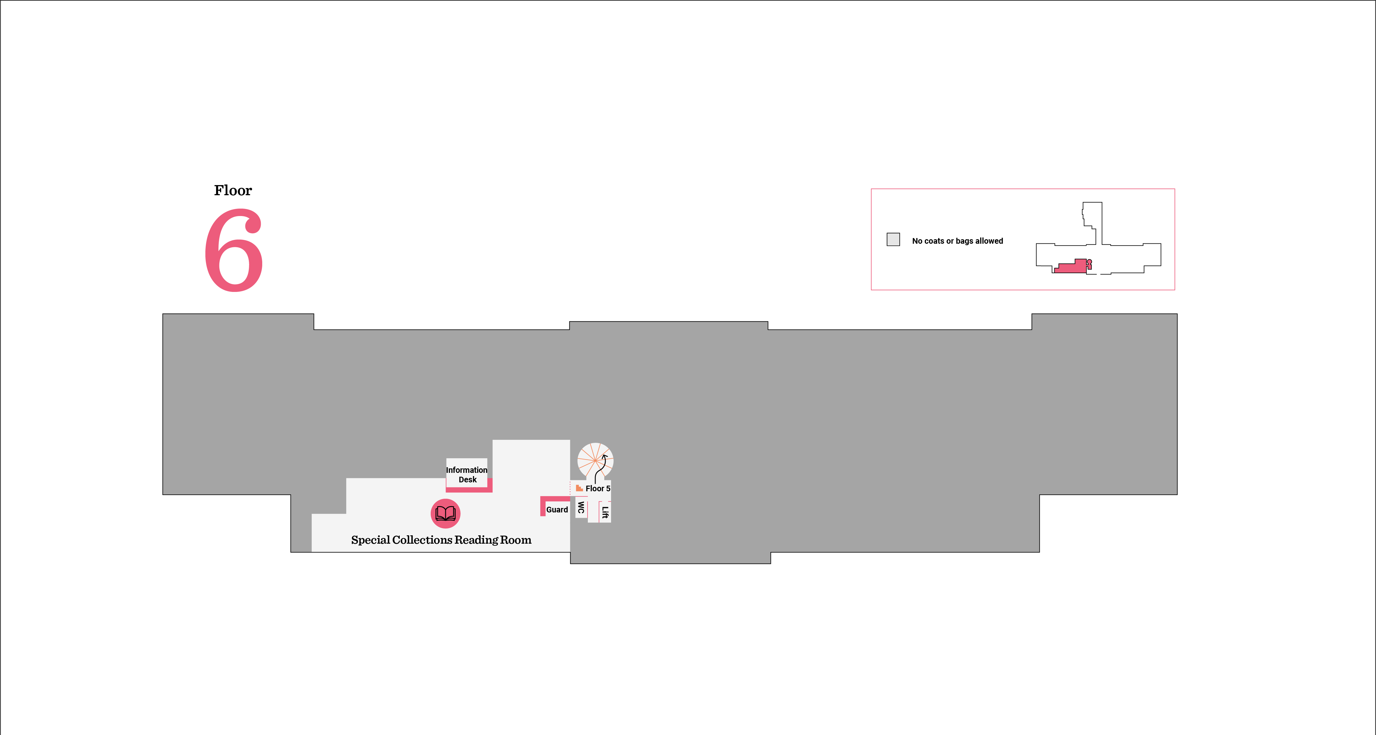 The Special Reading Room is located on floor 6, upstairs from the entrance level.