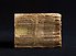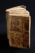 Ryggen på en gammal handskrift, bunden med smala trådar.